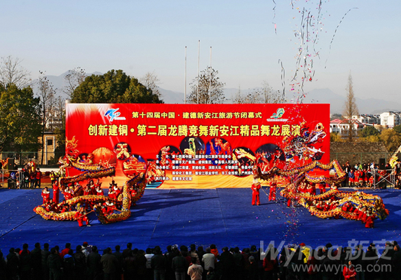 12月18日,第十四屆中國建德新安江旅游節(jié)閉幕式暨第二屆龍騰競舞新安江精品舞龍展演在建德市壽昌中學隆重上演。公司“新安金龍”作為首支出演的隊伍,飛龍乘云,帶領來自建德各鄉(xiāng)鎮(zhèn)(街道)、學校、消防、藝術團等的18條神龍,上演了一場群龍競舞的恢弘盛宴。